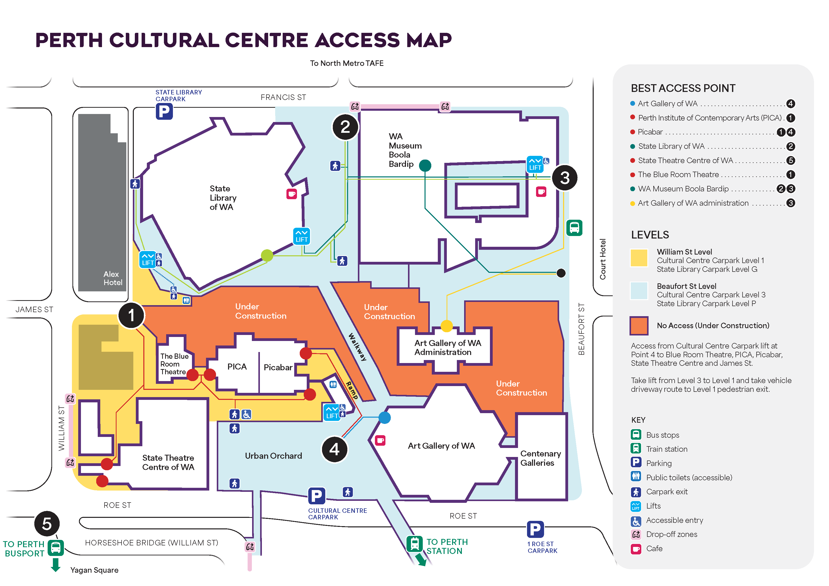 The Perth Cultural Centre (PCC) is currently undergoing a rejuvenation project and construction is in progress. As a result, patrons may wish to arrive slightly early to allow for any delay in making your way to the theatre.